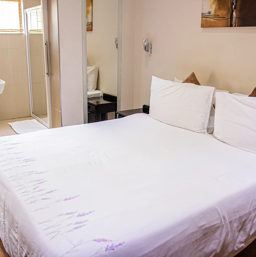En suite(shower), bar fridge & tea facilities air-conditioning, built-in wardrobes, TV with SABC/MNET and DSTV channels....